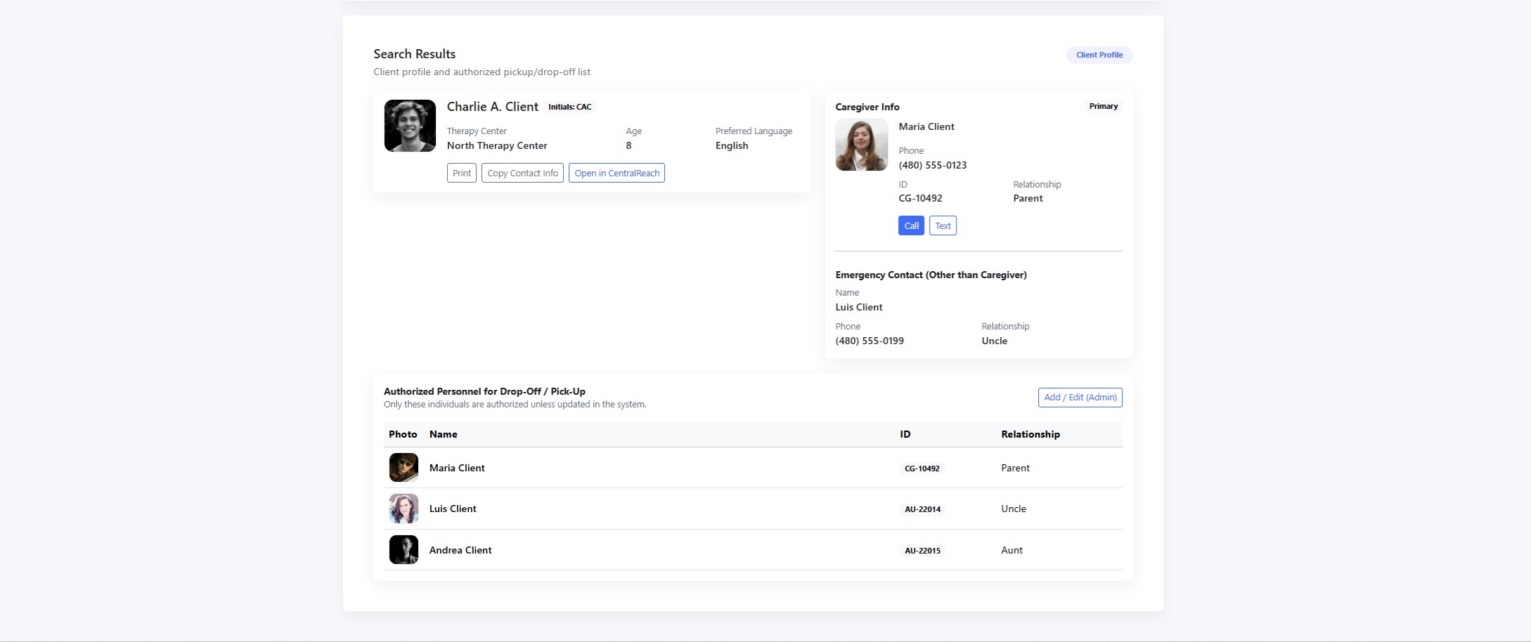 - Access vital client contact and authorization details